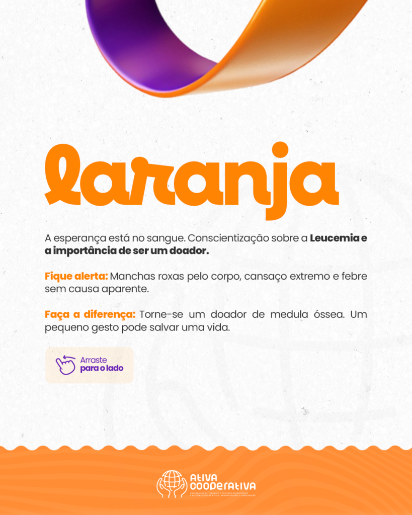 🧡 O laranja reforça que a esperança está no sangue e que ser doador de medula óssea pode salvar vidas.